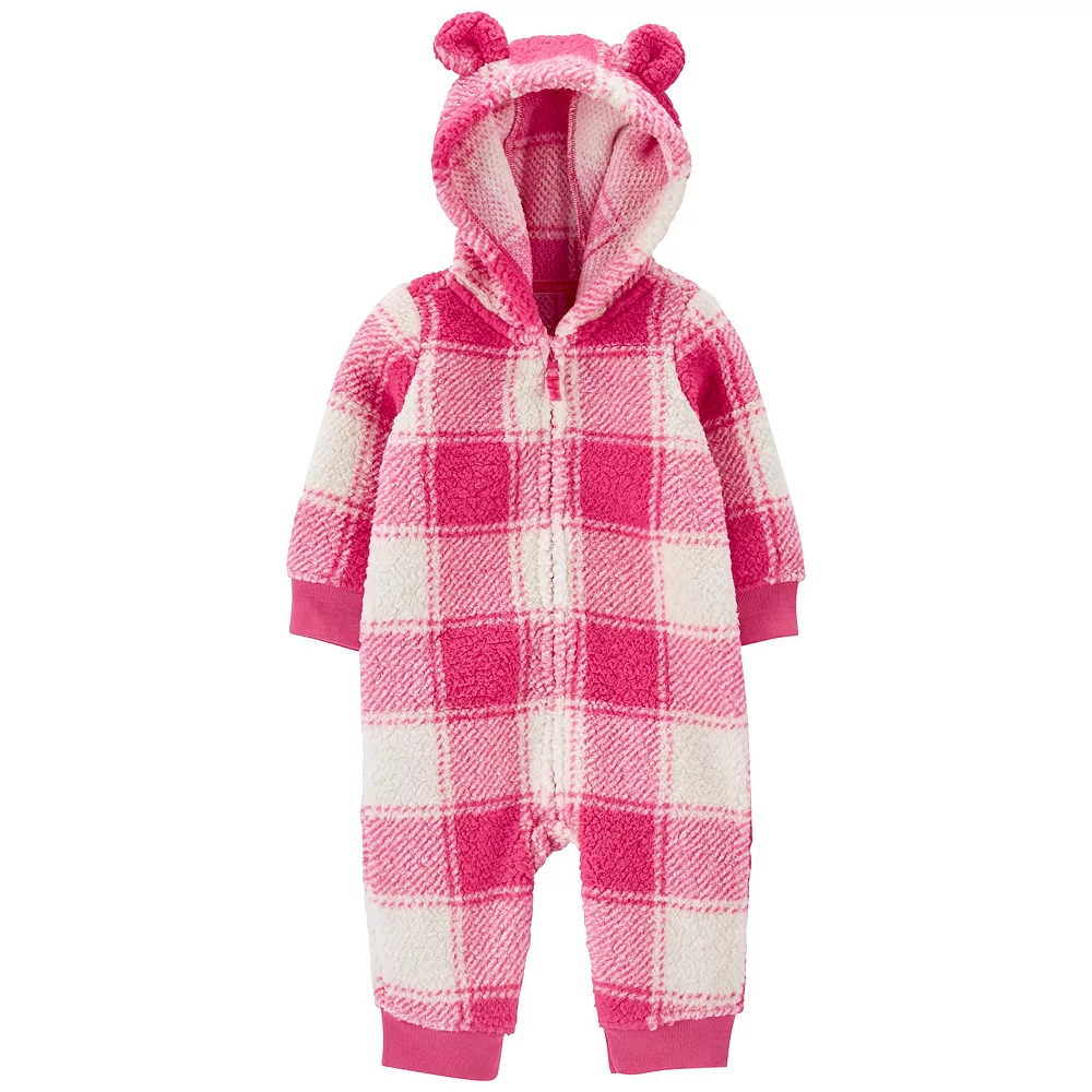 She’ll be cute and cozy in this girls’ Carter’s plaid, sherpa jumpsuit.