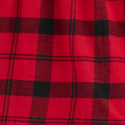 - Top: crewneck, long sleeve, back button closure, bow detail on chest, allover plaid print, flannel construction