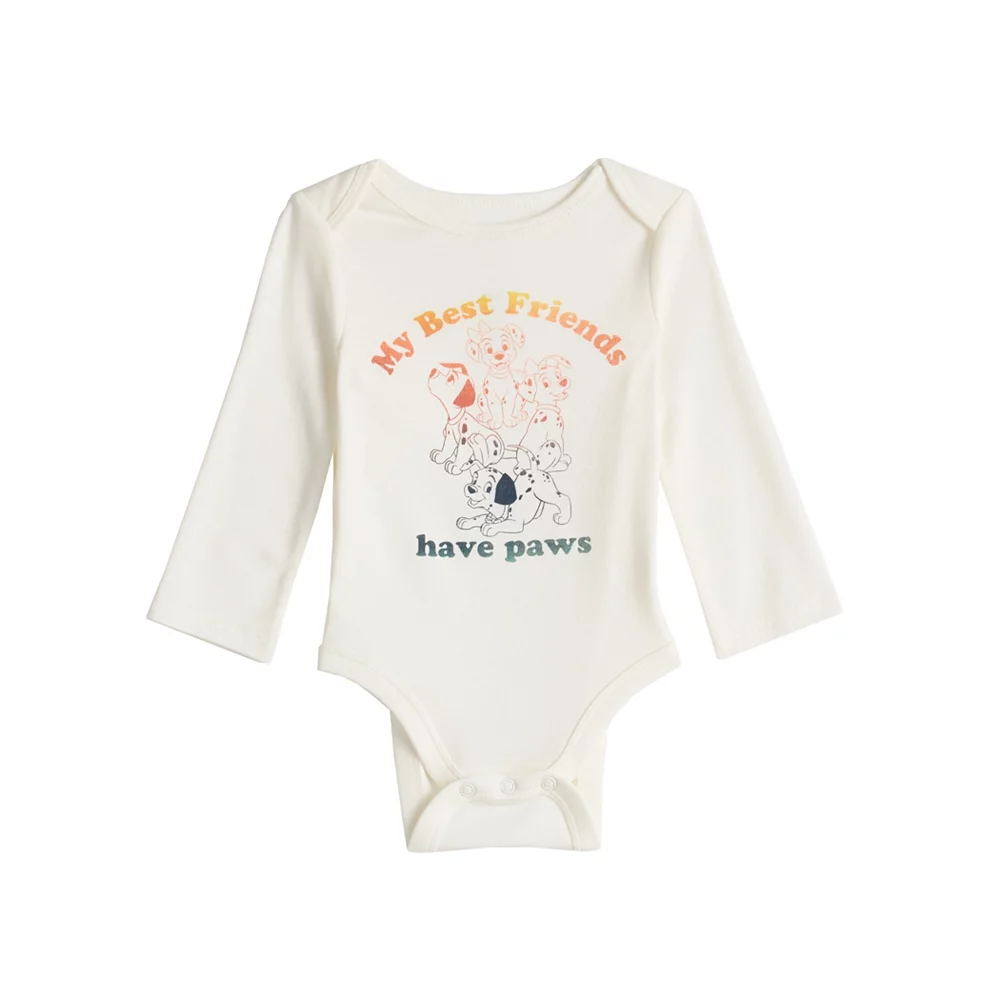 Your little lady will look even cuter than she already does (if that’s even possible) in this baby girls’ 101 Dalmatians graphic bodysuit from Jumping Beans. ©Disney