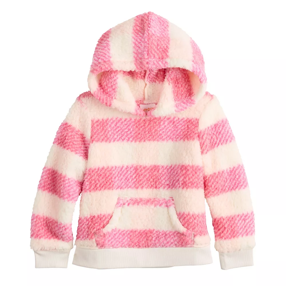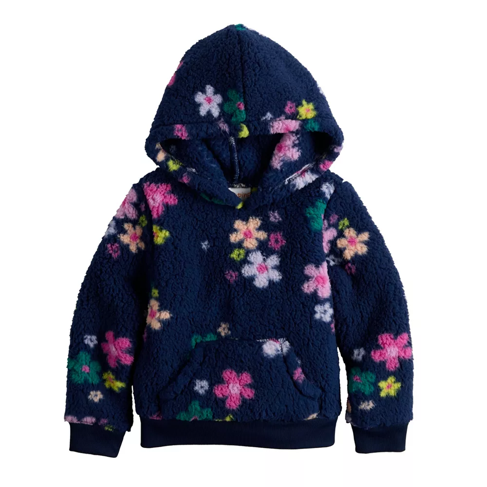 Give her cold weather wardrobe a cuddly refresh with this cozy baby girls’ sherpa pullover hoodie from Jumping Beans.