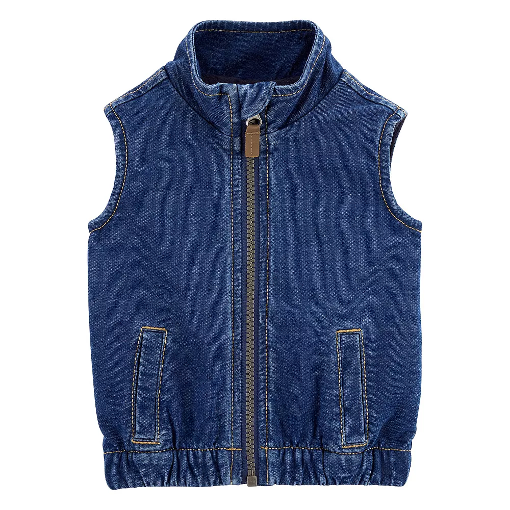 Your little one will rock this classic (and cute) girls’ zip-up knit denim vest by Carter’s.