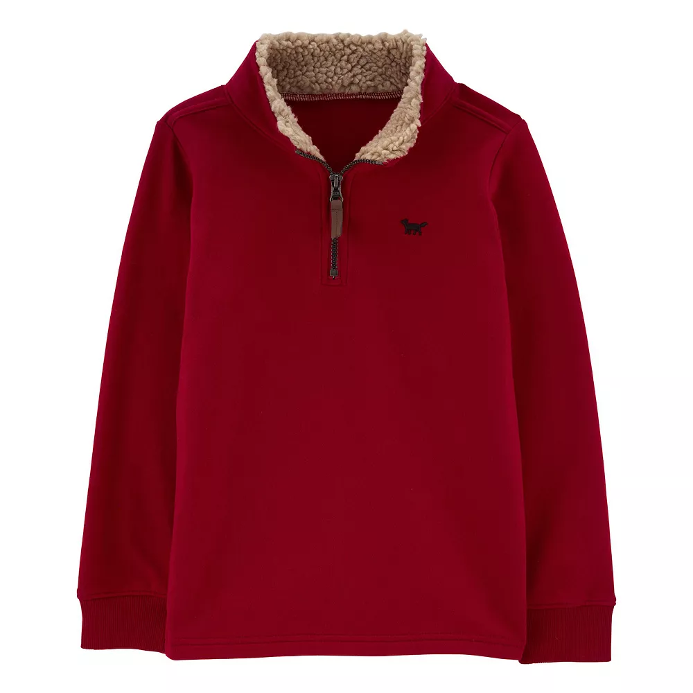 Layer him in Carter’s style with this fleece quarter-zip pullover sweater.