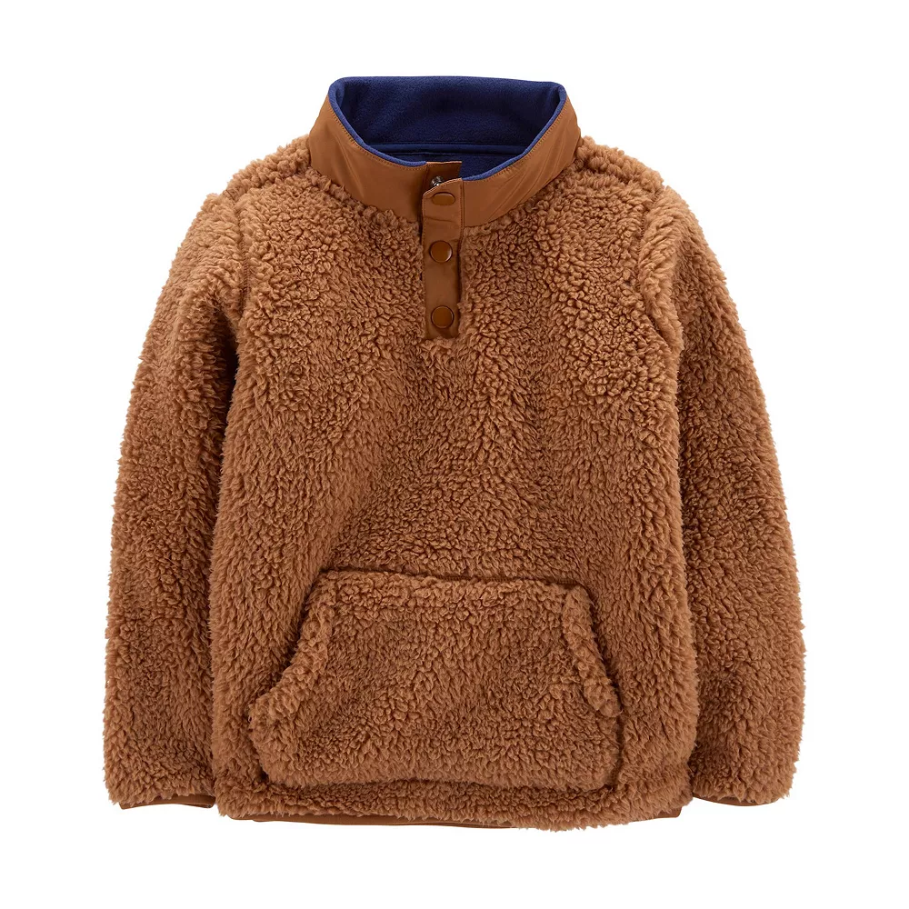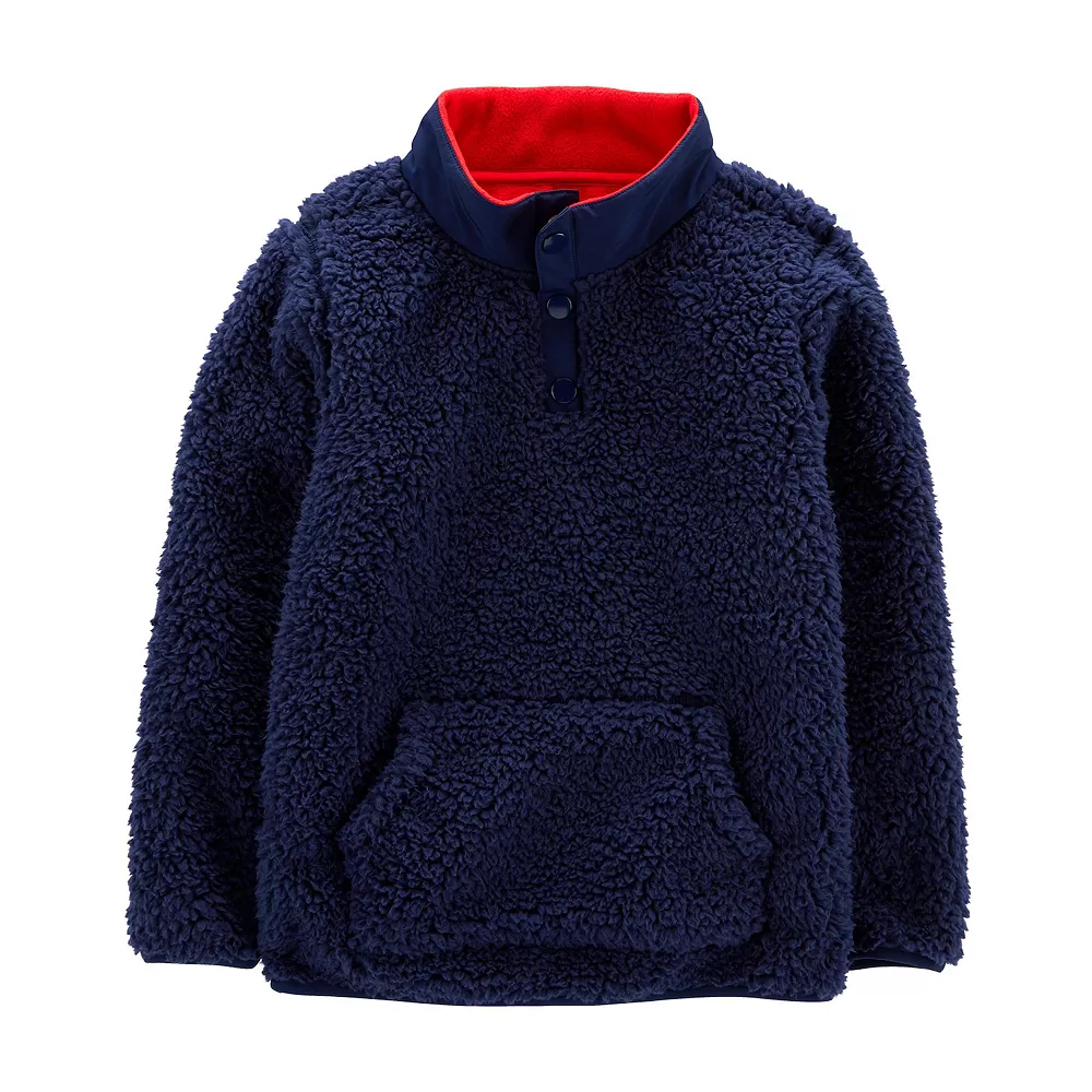 This boys’ Carter’s pullover is the ideal layering piece on cooler days with a sherpa fabric and quarter zip front.
