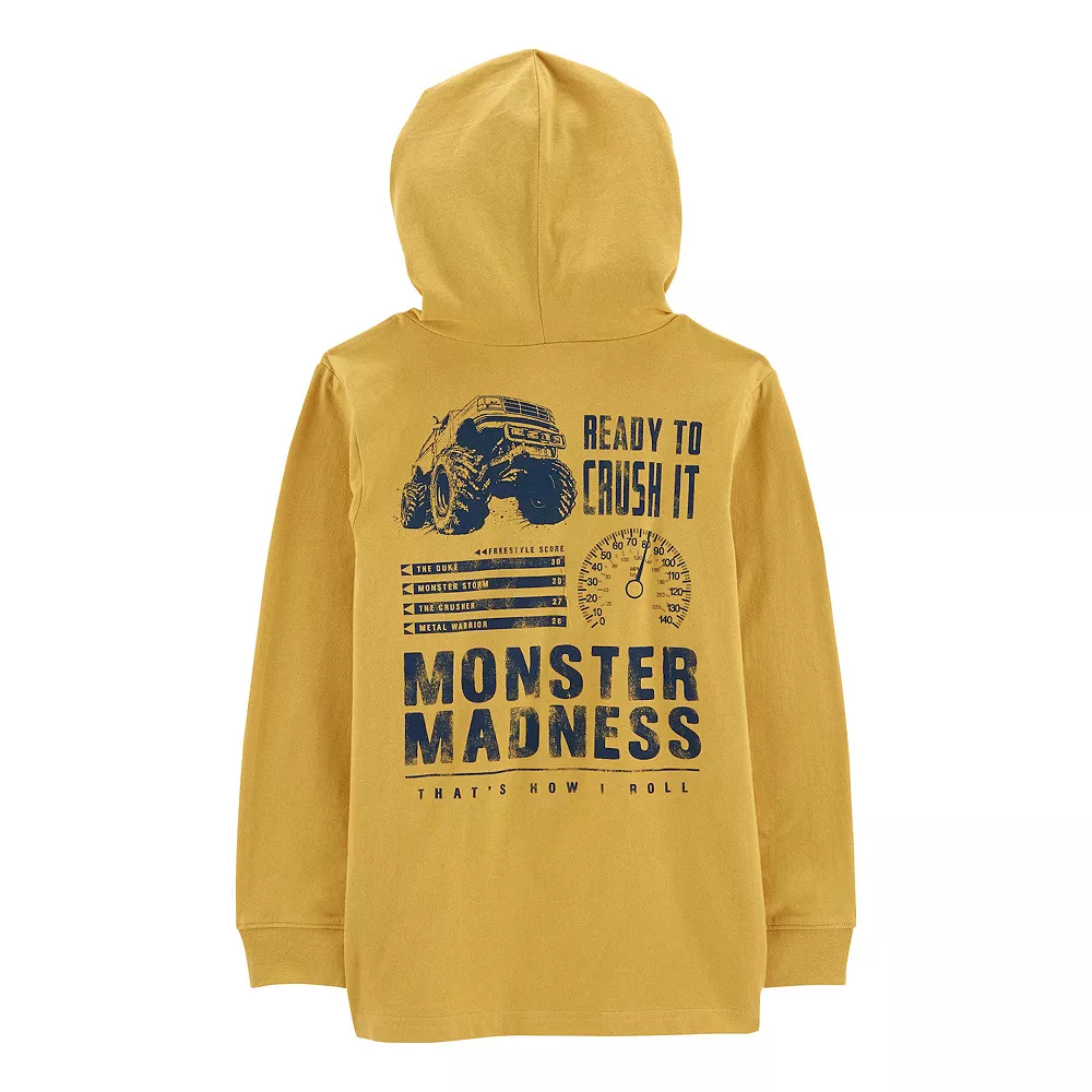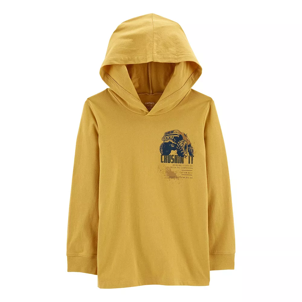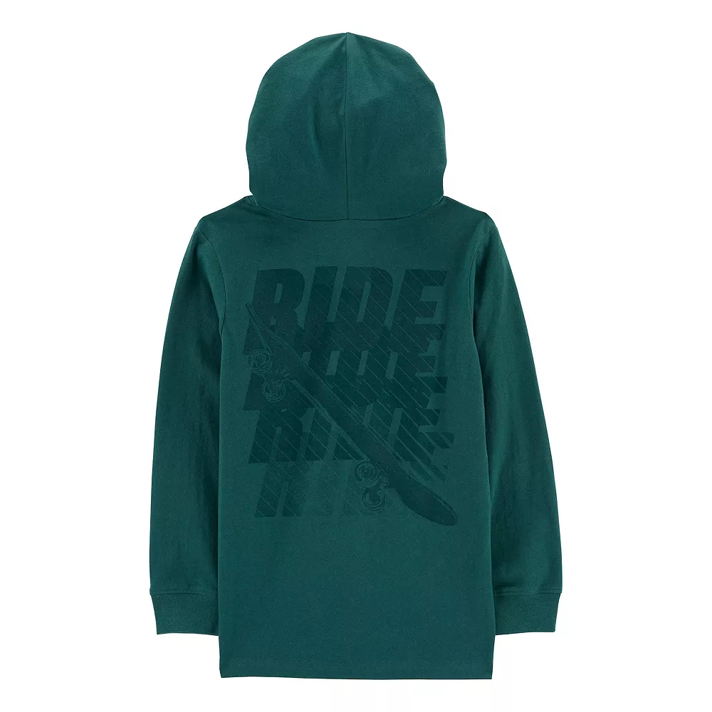 Keep him warm while he chills out in this super soft hooded tee, with sporty graphics on the front and back.