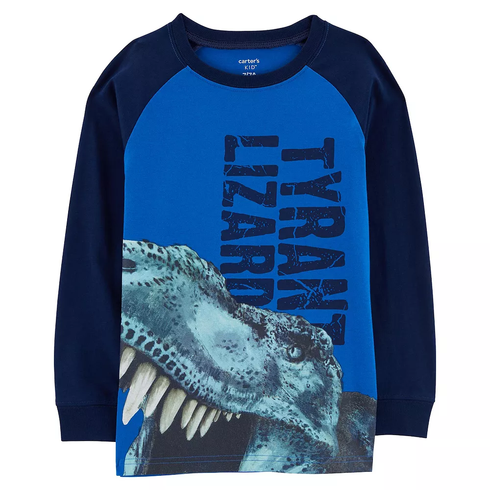 Your dino fan will love this boys’ Carter’s “Tyrant Lizard” T-rex graphic tee.