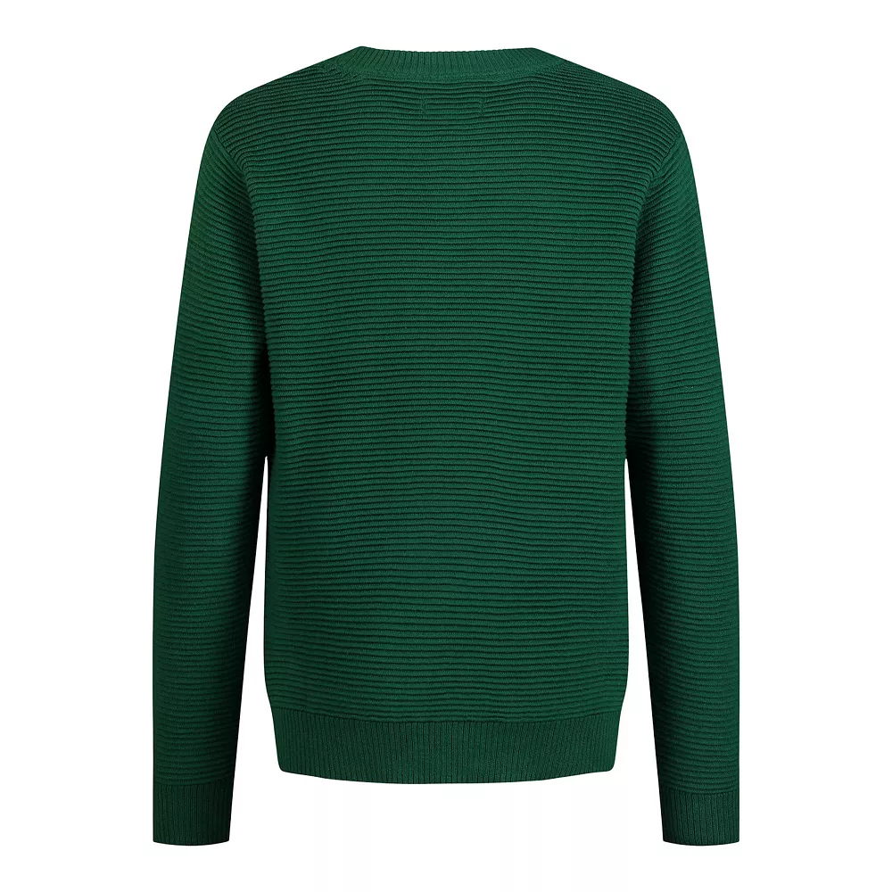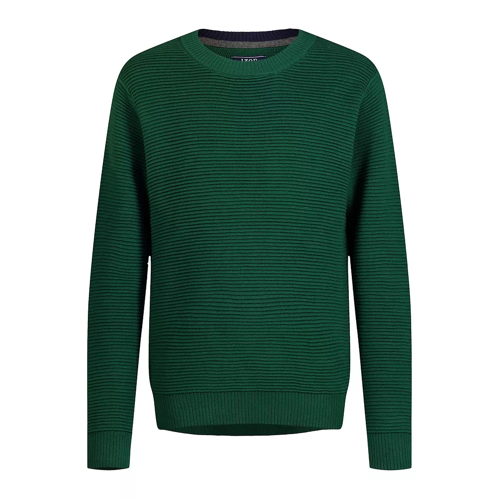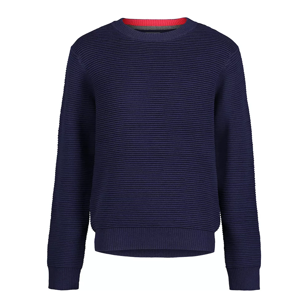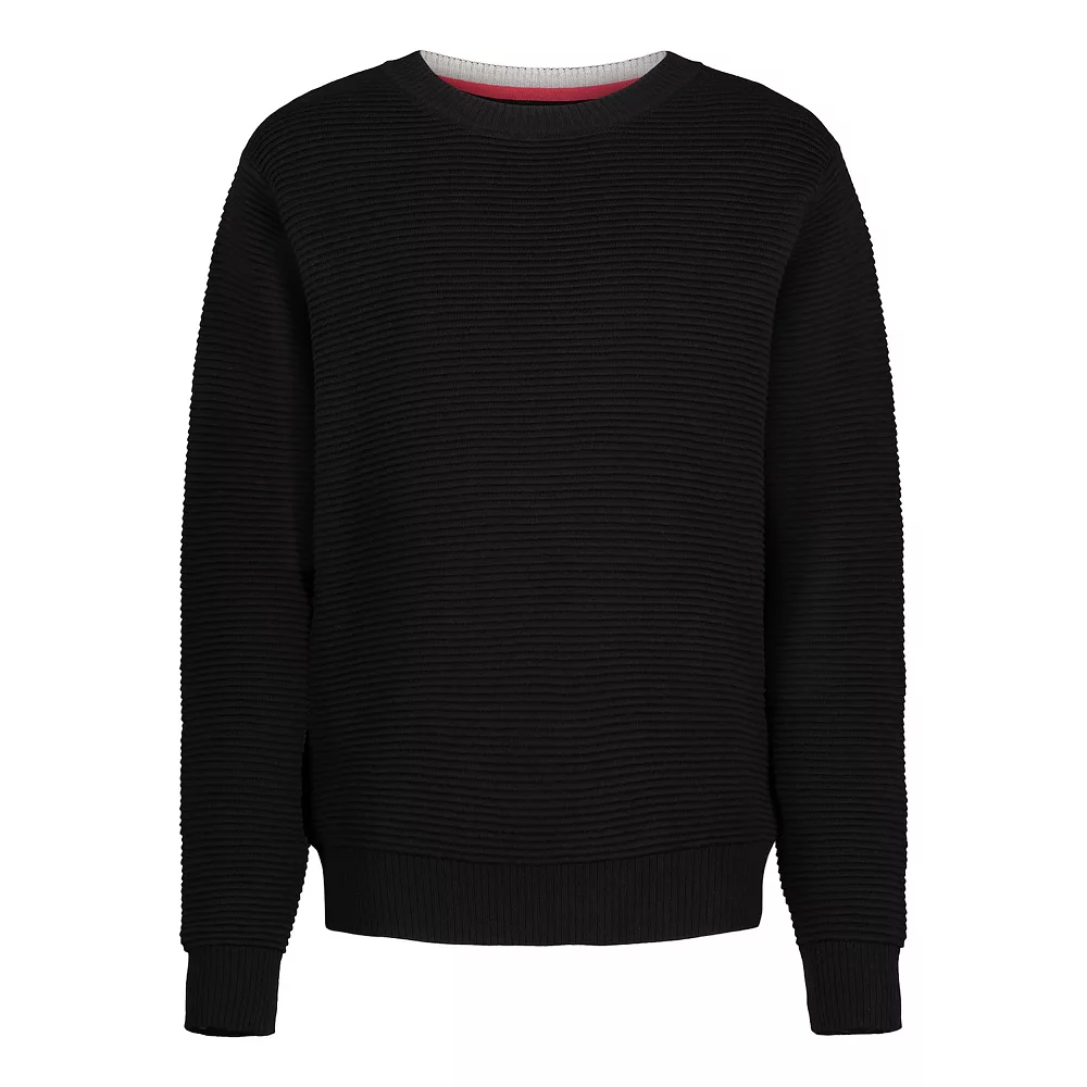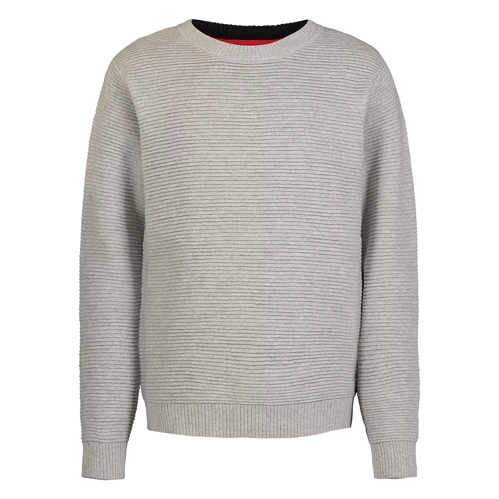 Upgrade his look with the neat yet casual comfort of this boys’ solid crewneck sweater.