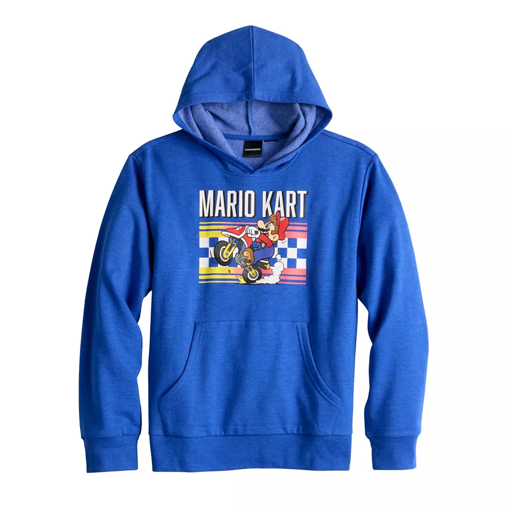 Level up his wardrobe with this high speed boys’ Mario Kart hoodie.