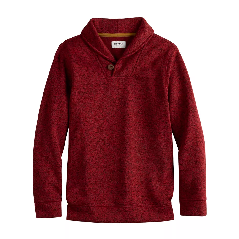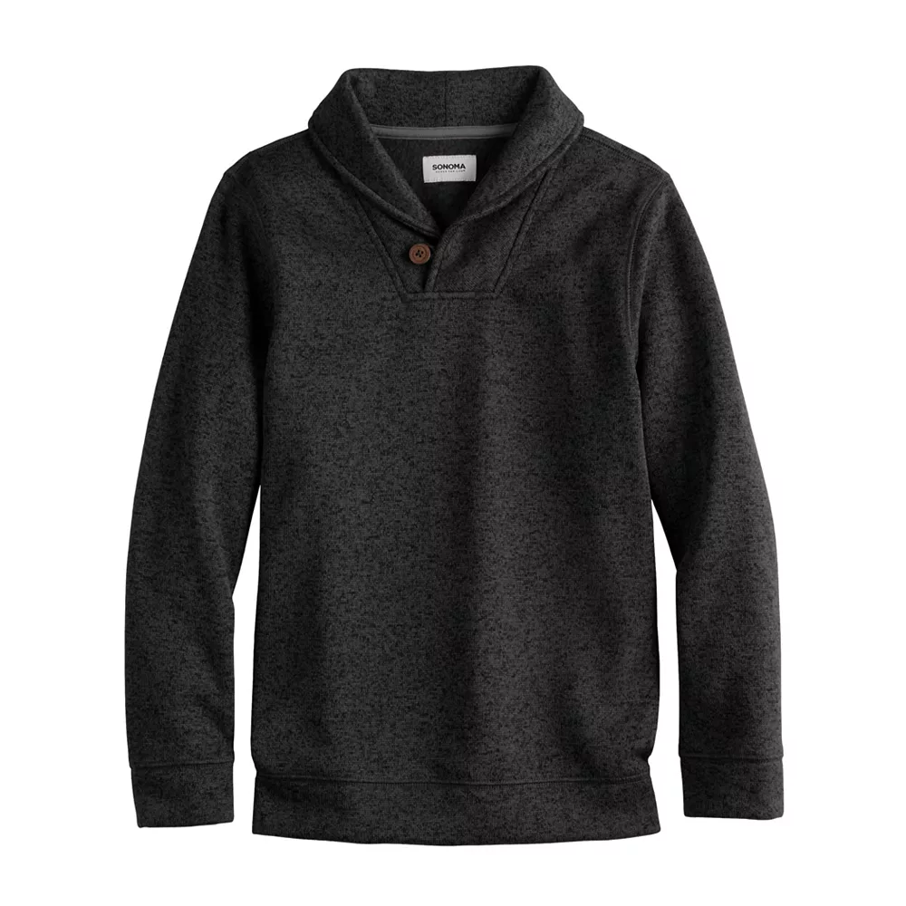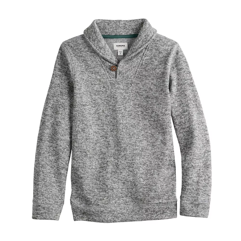 He’ll look handsome as can be wearing this boys’ Sonoma Goods For Life shawl neck sweater.