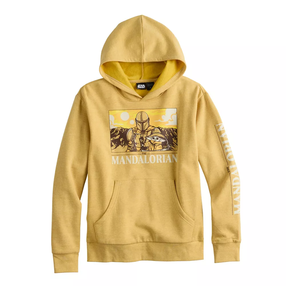 This is the way. Your jedi will love this boys’ Star Wars Mandolorian and Grogu hoodie.