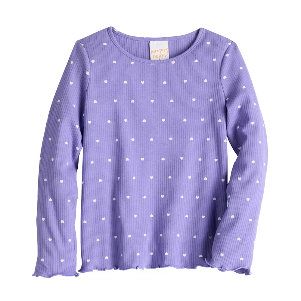Give her basics a refresh with this cute girls’ lettuce edge long sleeve tee from Jumping Beans.