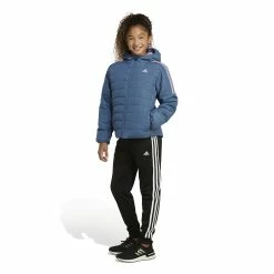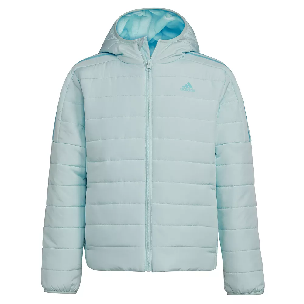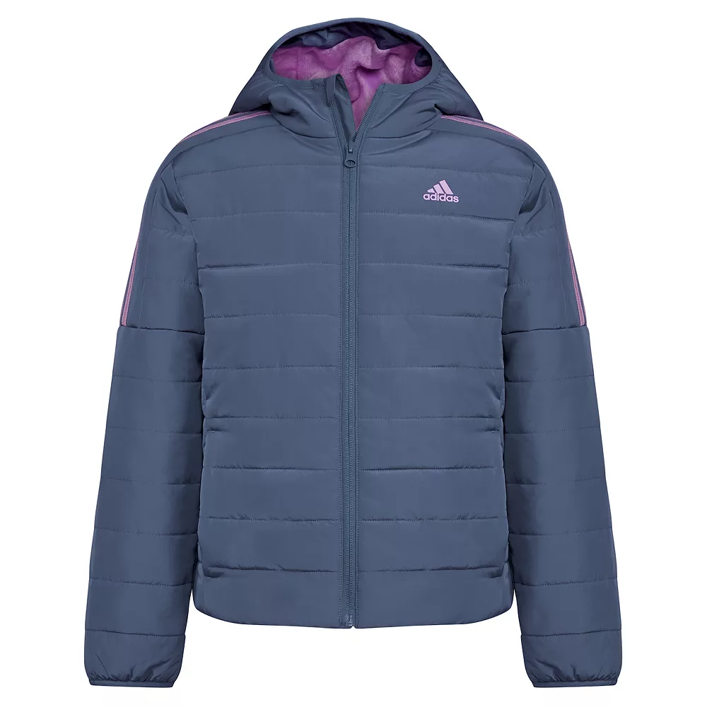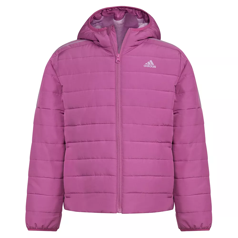 She’ll be repping adidas style even when it’s chilly out. This girls’ puffer jacket shows off sporty 3-Stripes down the shoulders. It’s made of water-resistant woven fabric that’s padded for cozy warmth.