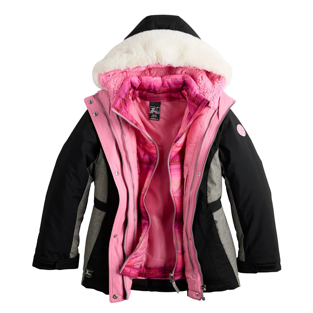 Cozy, cute and versatile, she’ll love the warmth and style of this girls’ three-in-one systems jacket from ZeroXposur.