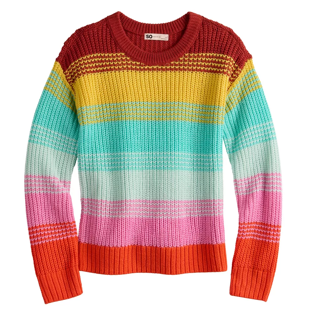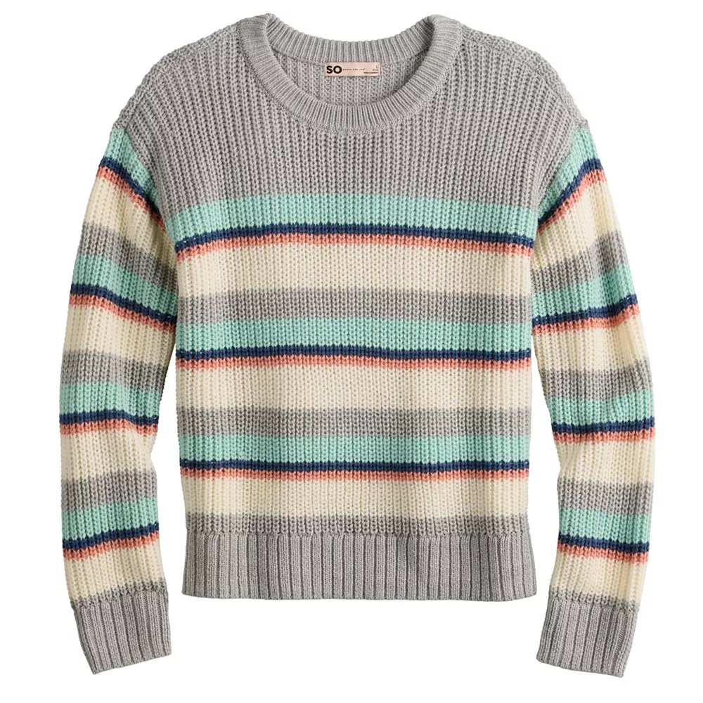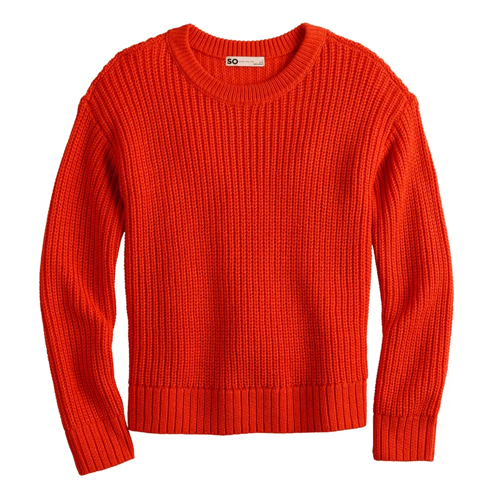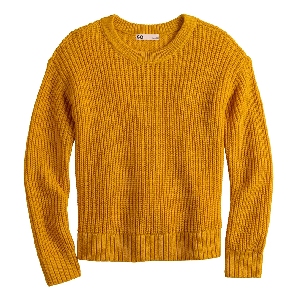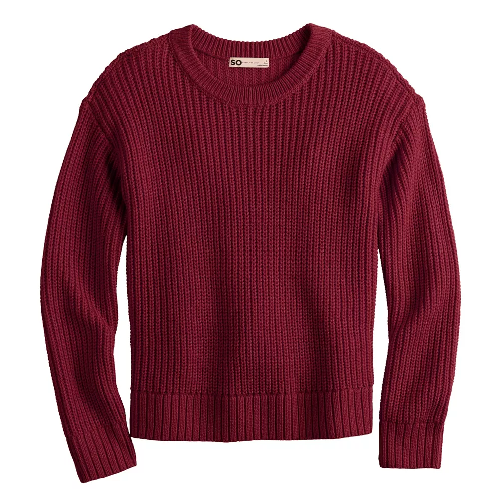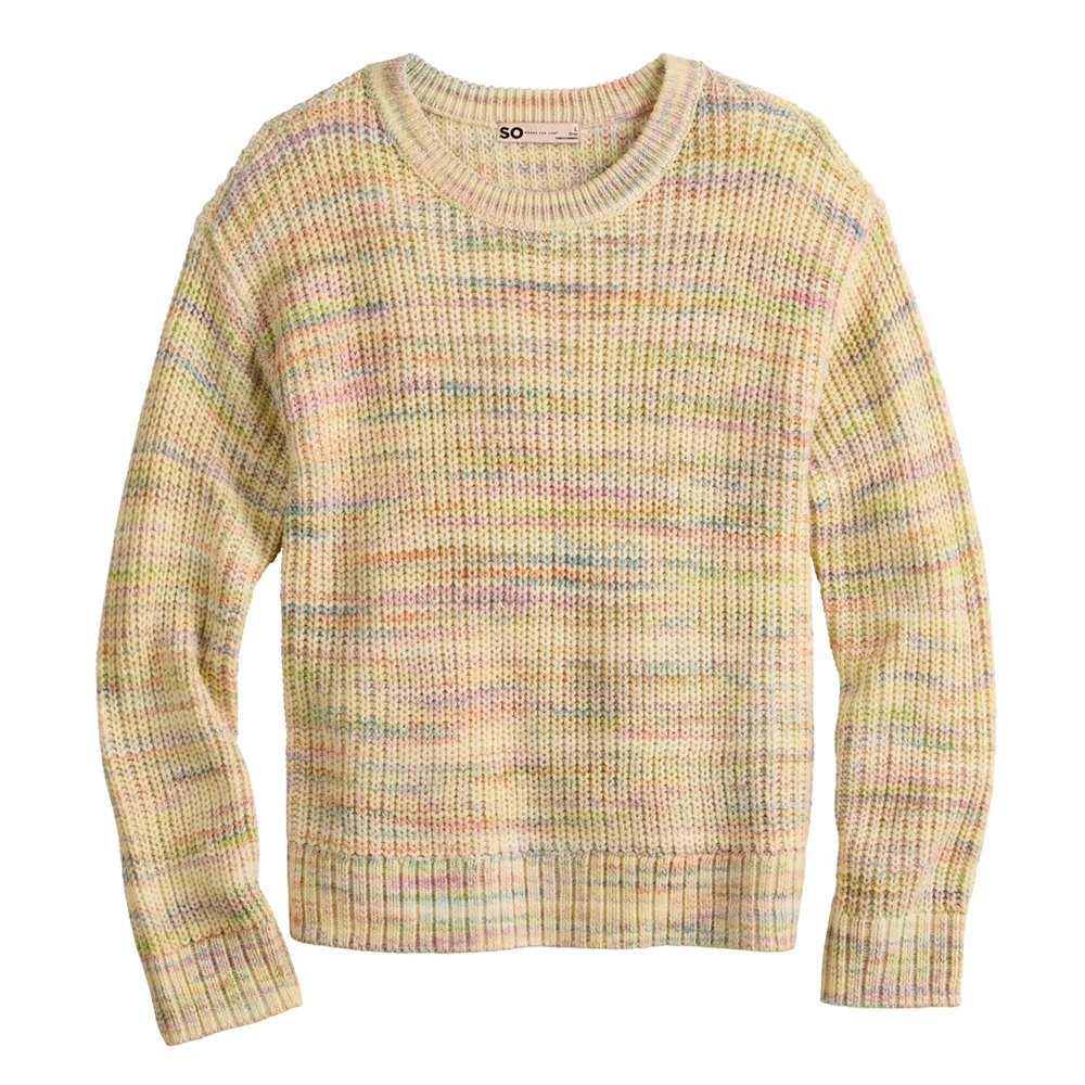 SO defines classic cold-weather coziness with this girls’ crewneck sweater.