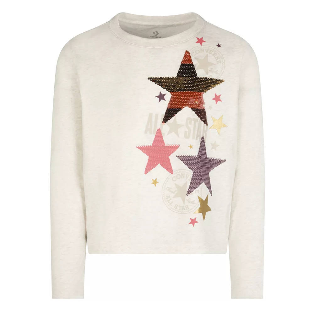 Add a touch of sparkle to her t-shirt collection with this girls’ sequins embellished long sleeve graphic tee from Converse.