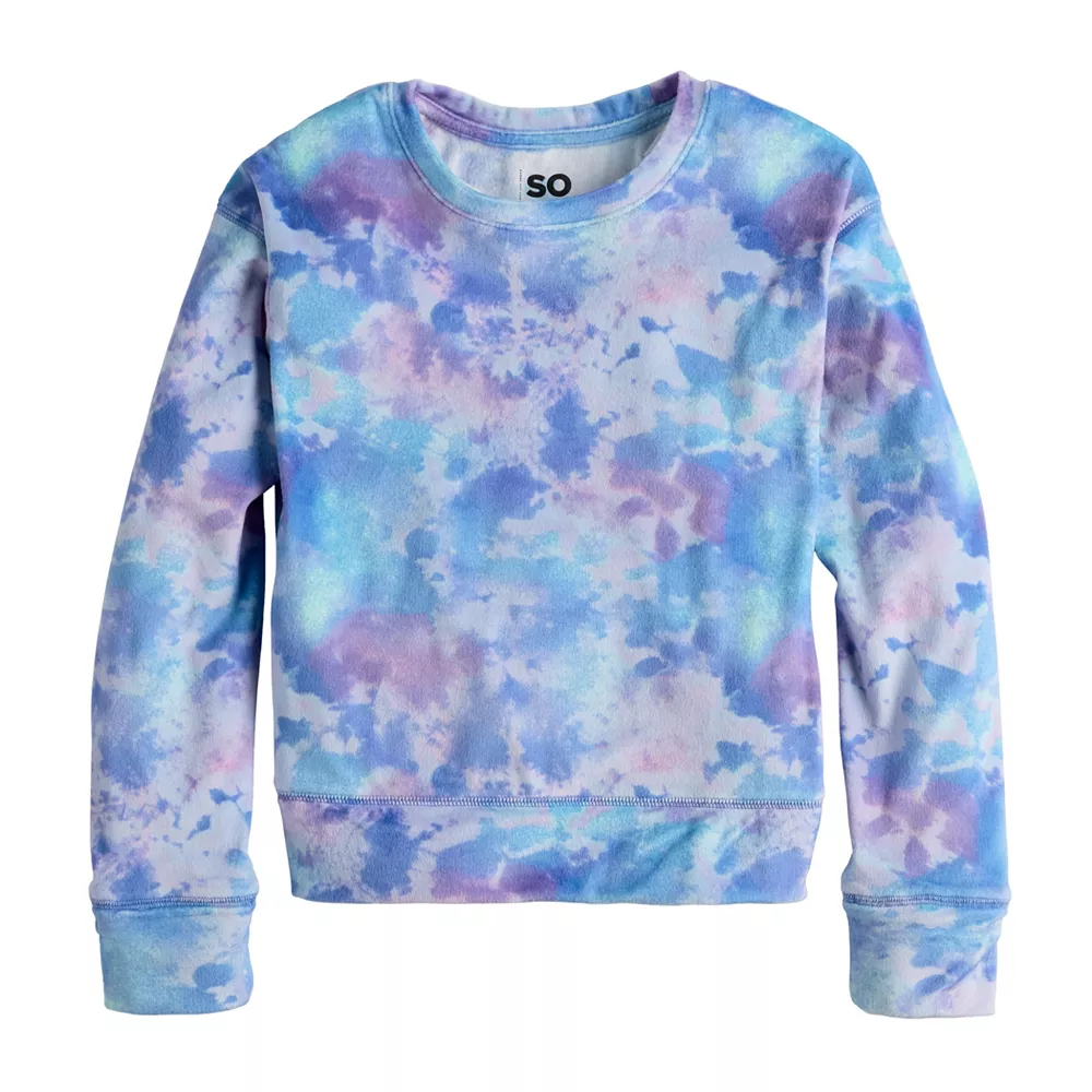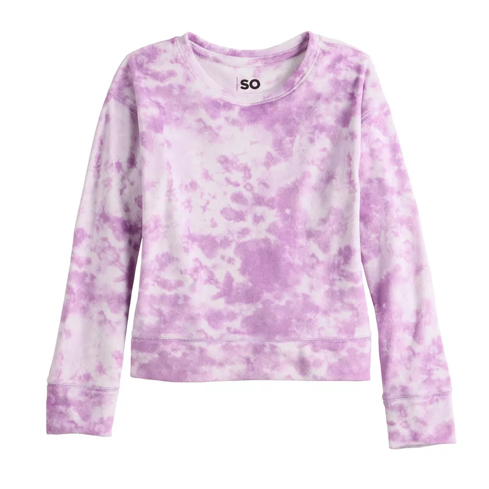 This comfy and stylish girls’ SO Velour Pullover Crewneck is sure to be one of her new everyday favs.