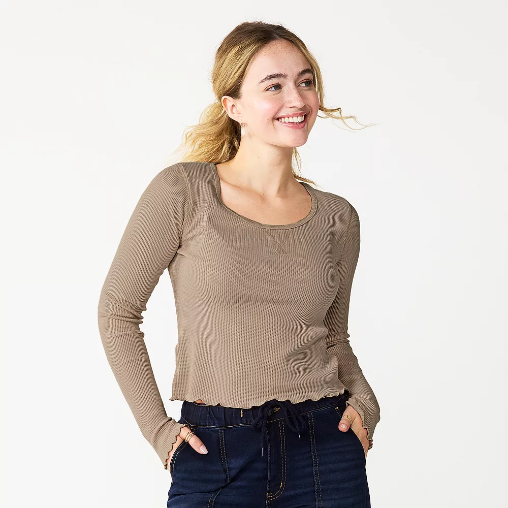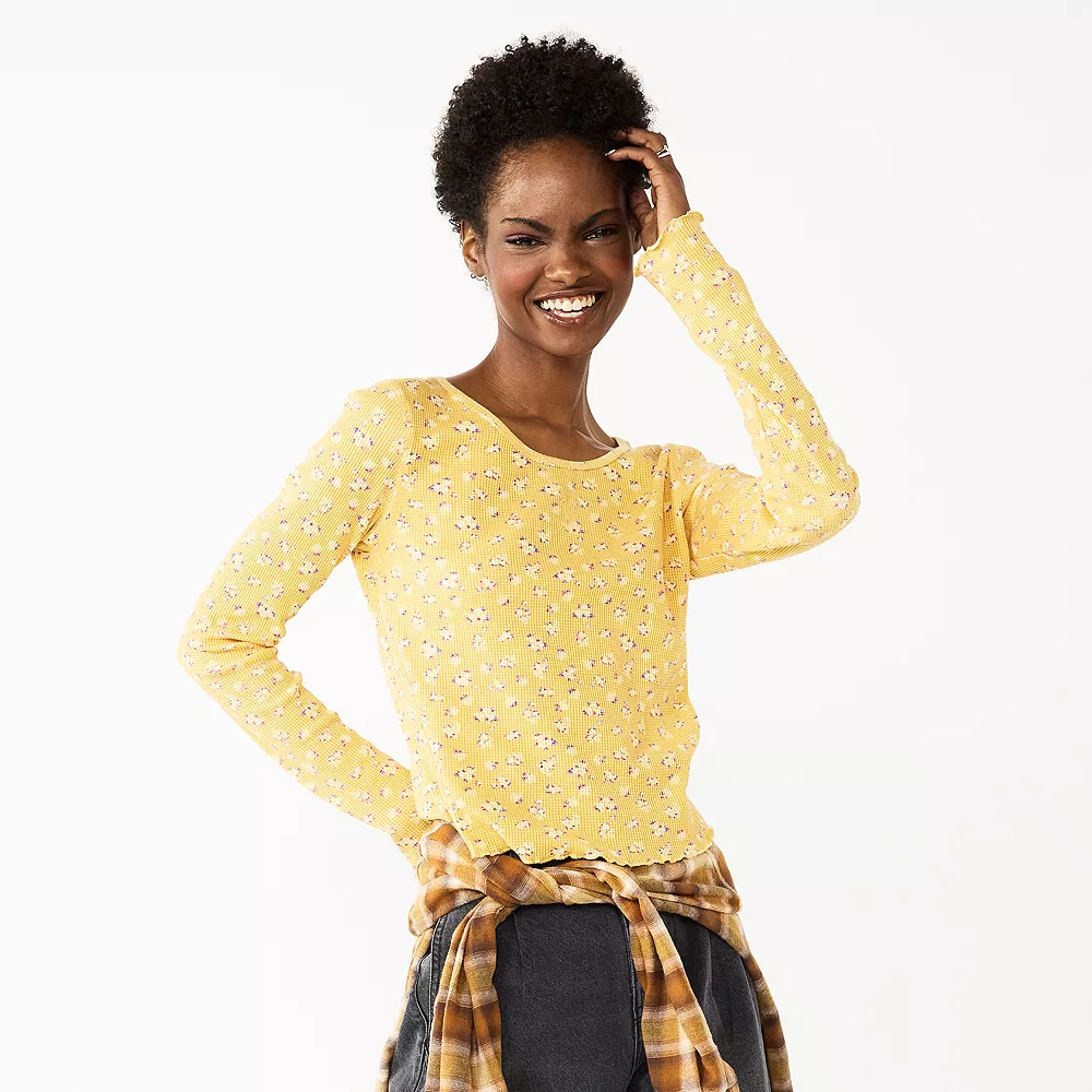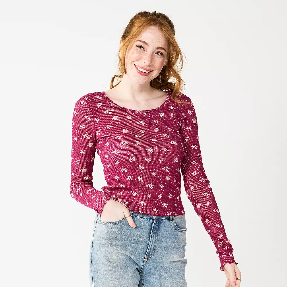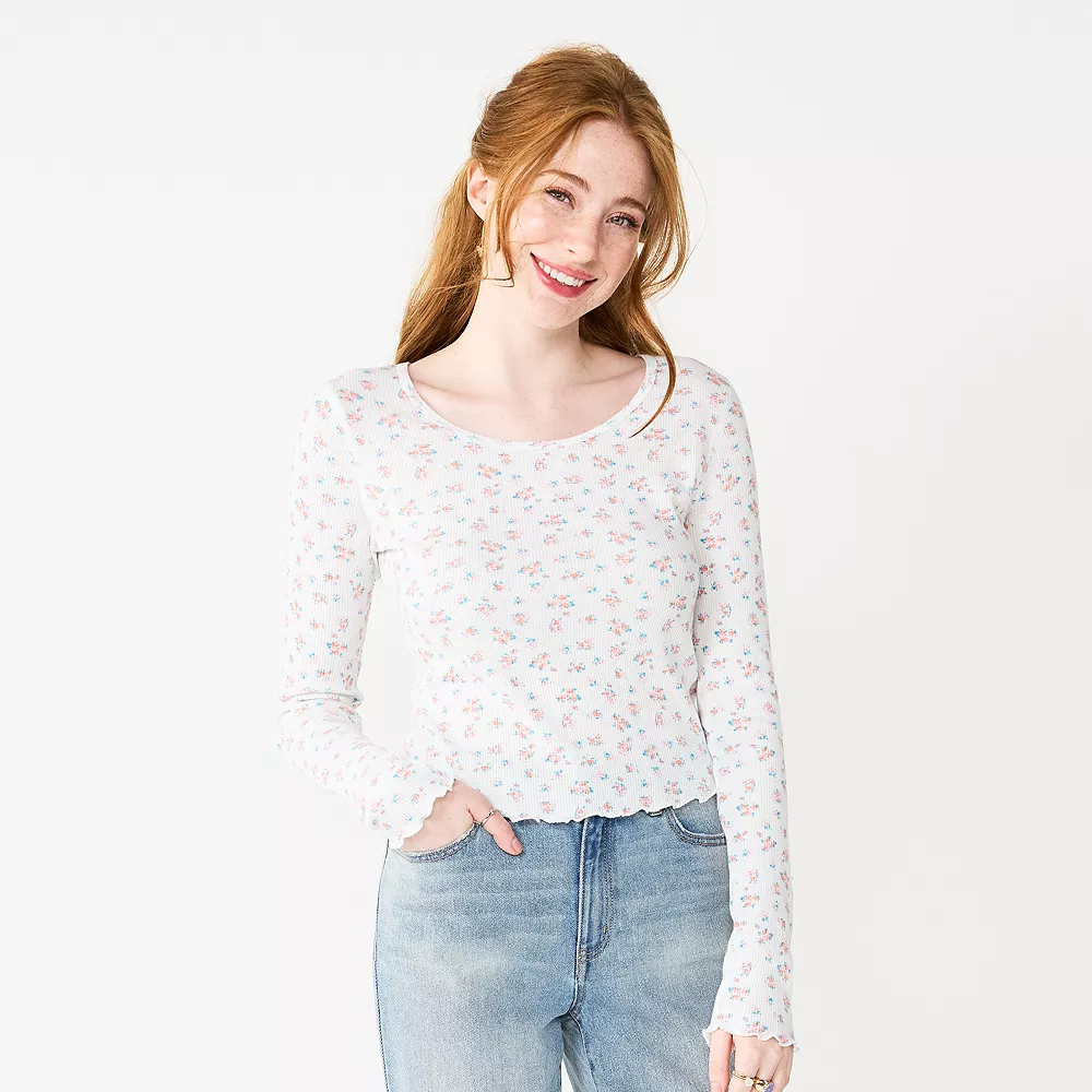 Piece together a casual look you’ll love with this juniors’ cropped tee from SO!
