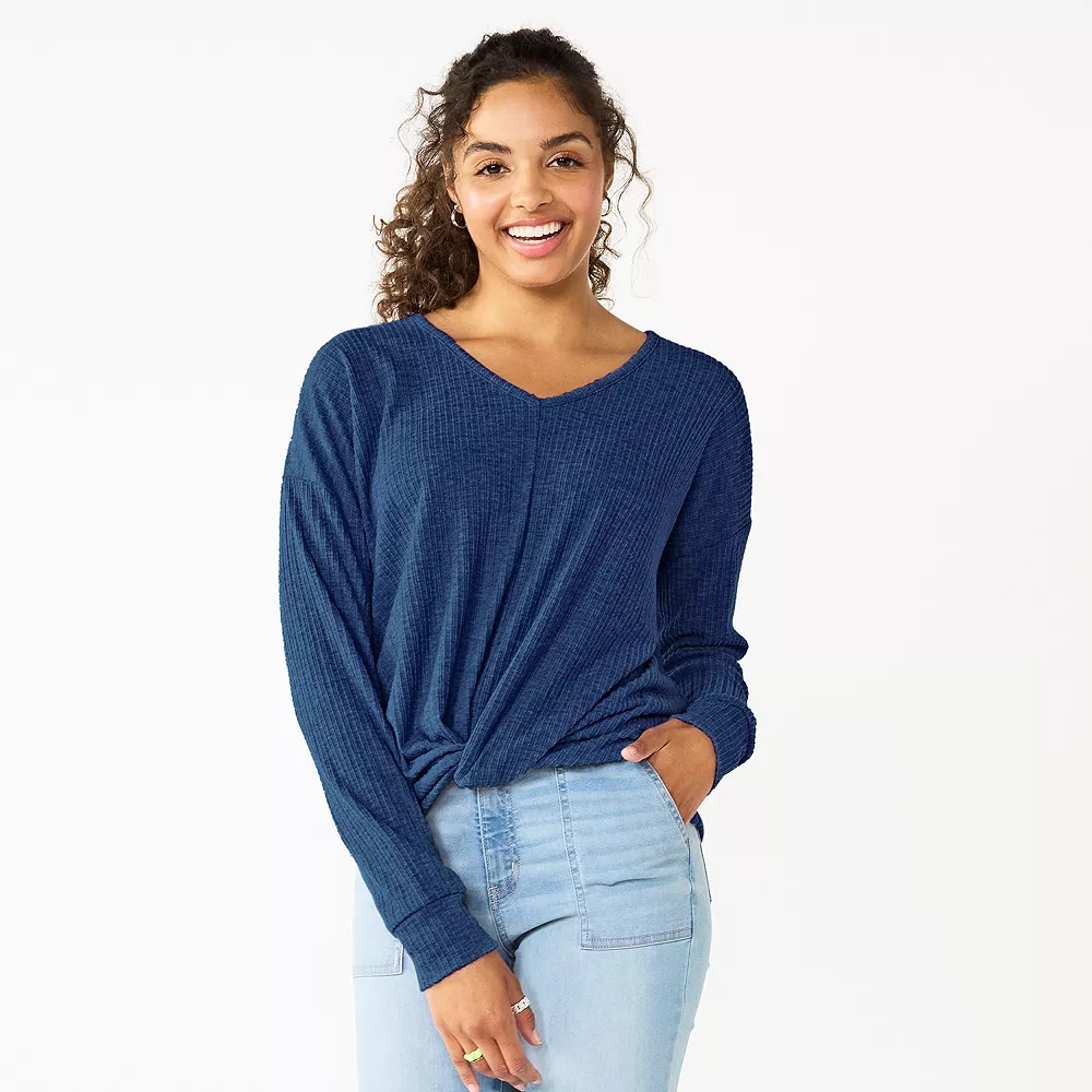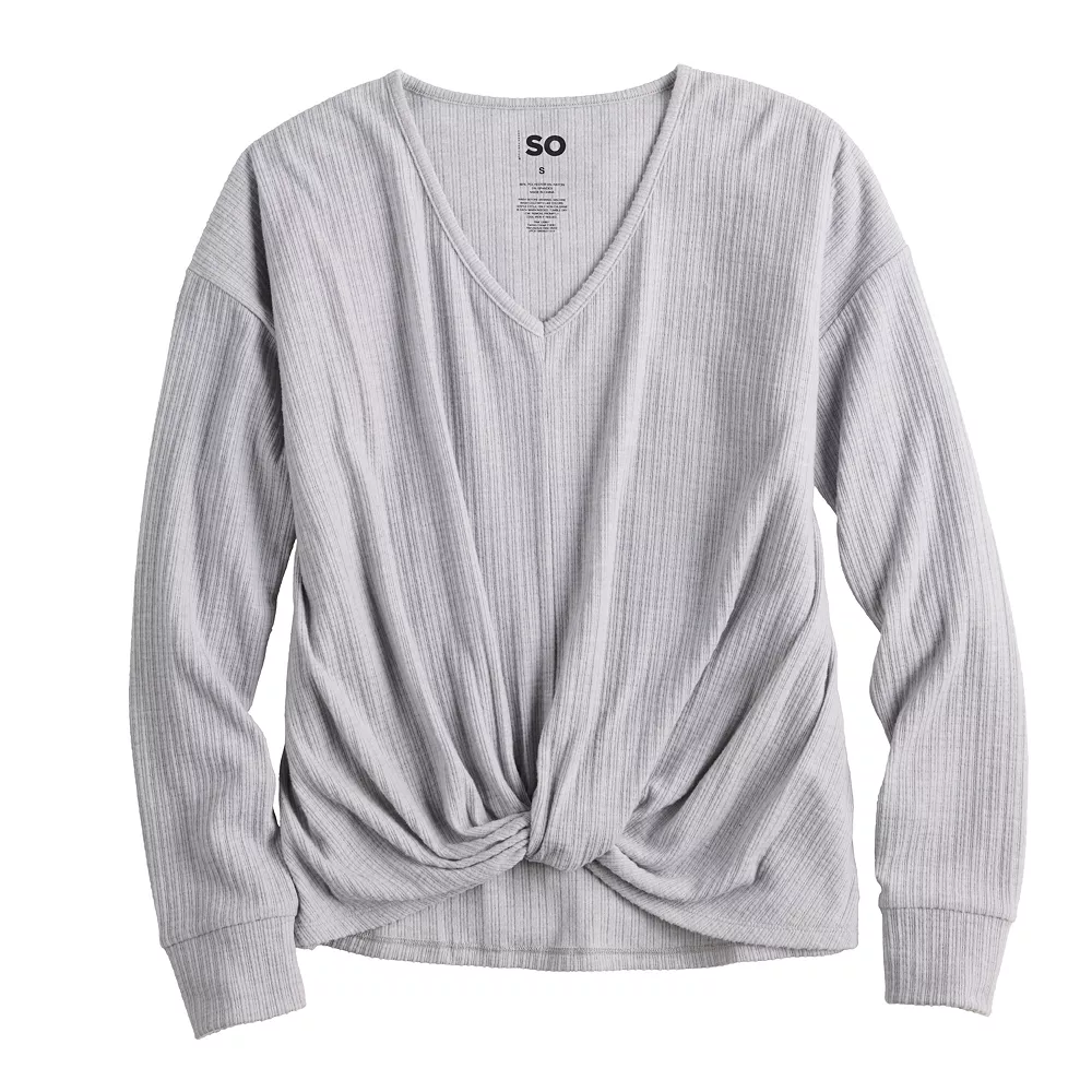 Stay stylin’ this season with this cute front twist juniors’ top from SO.