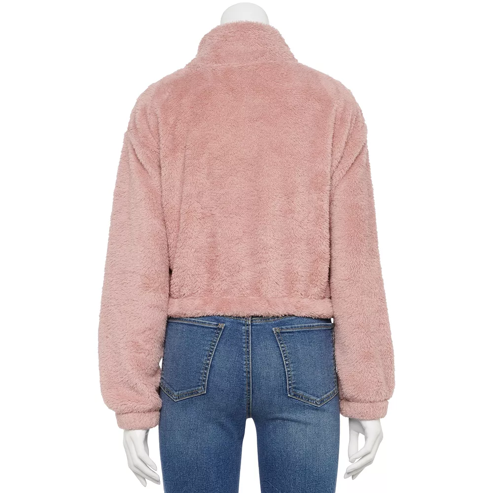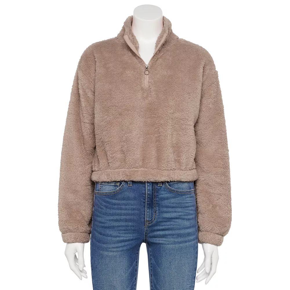 Piece together a look you’ll love with this juniors’ quarter-zip sherpa pullover from SO.
