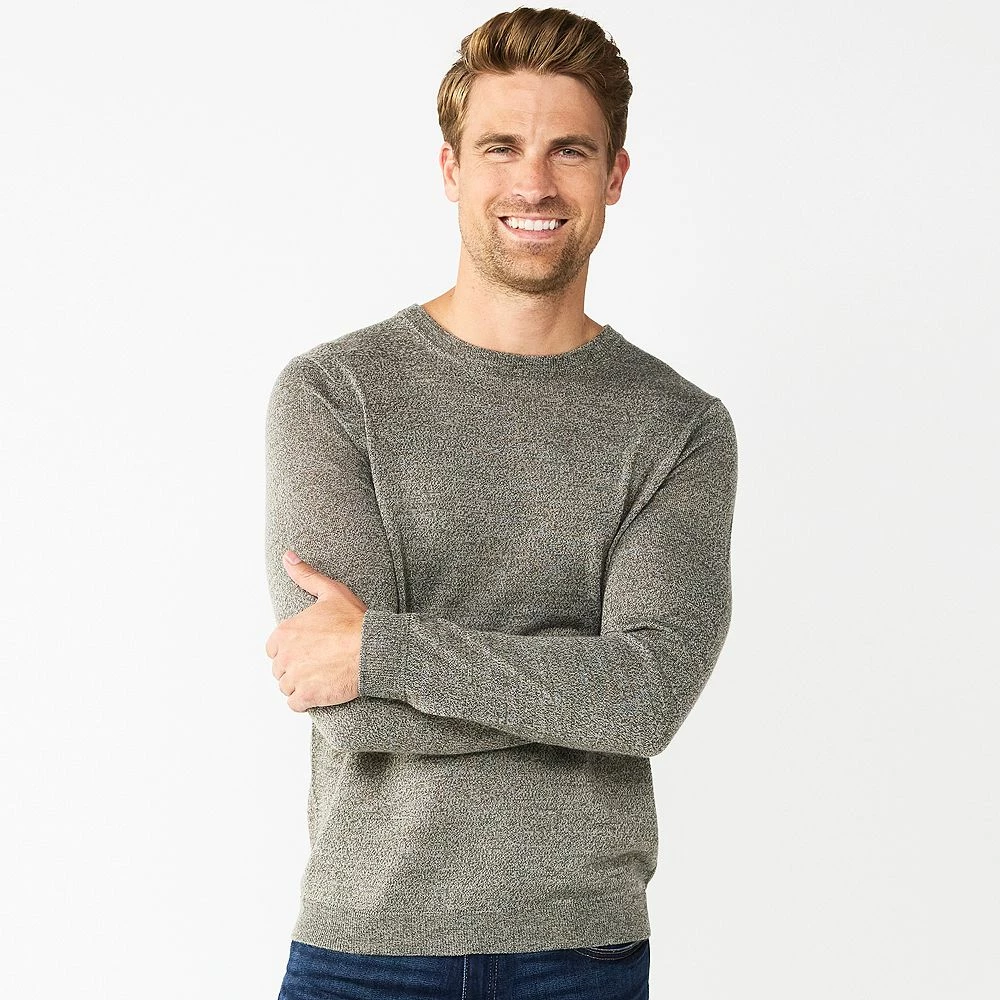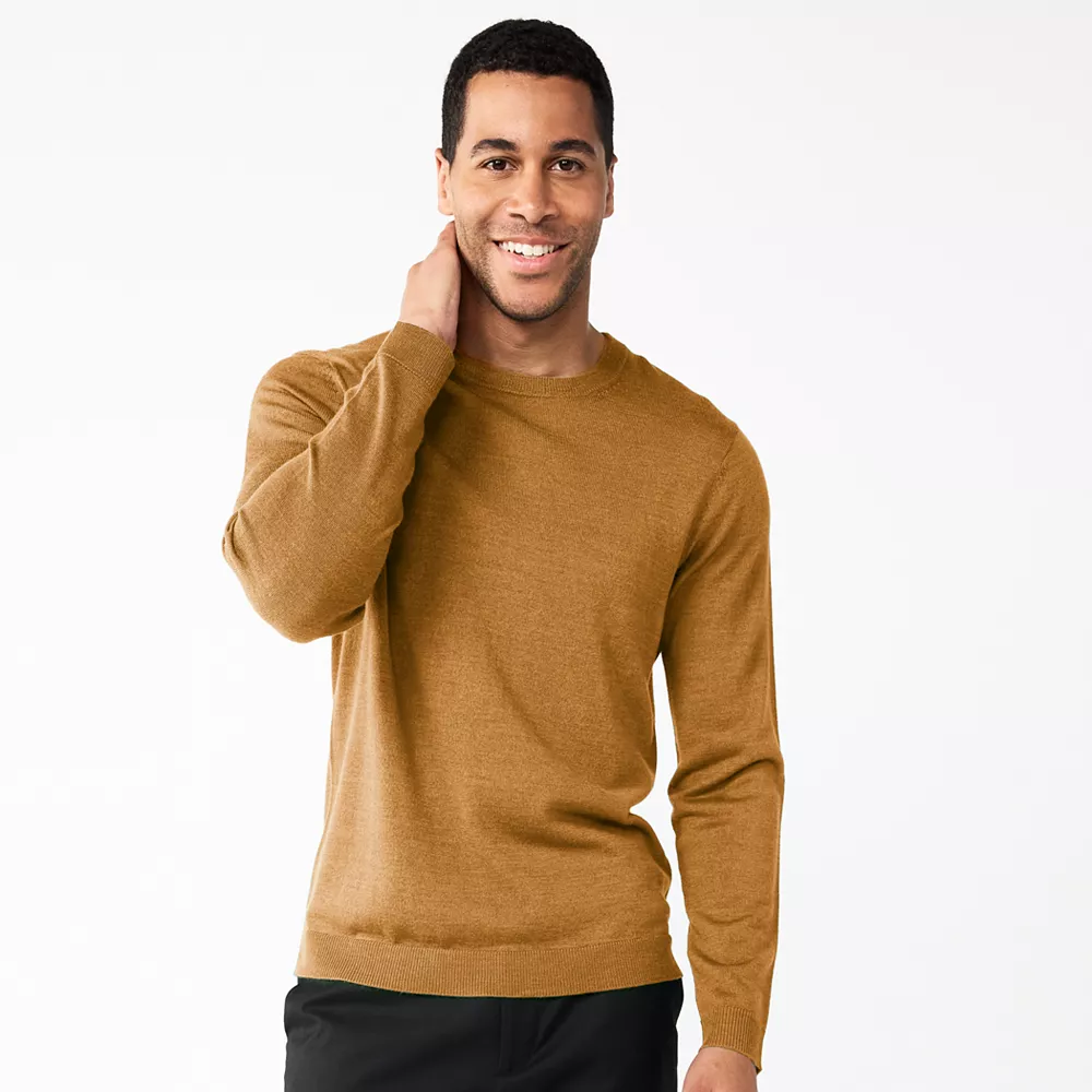 Some things never go out of style like this men’s classic Merino wool blend sweater from Apt. 9.
