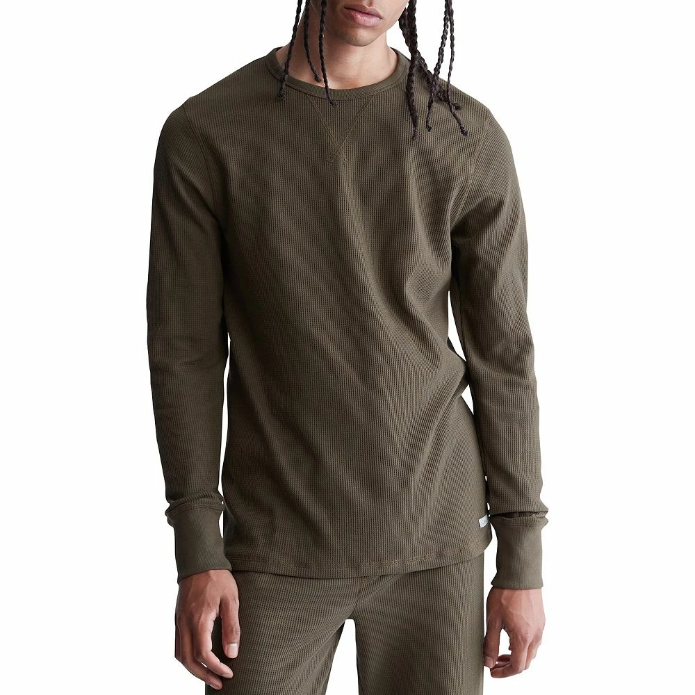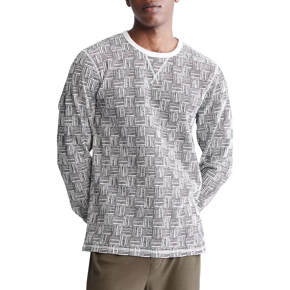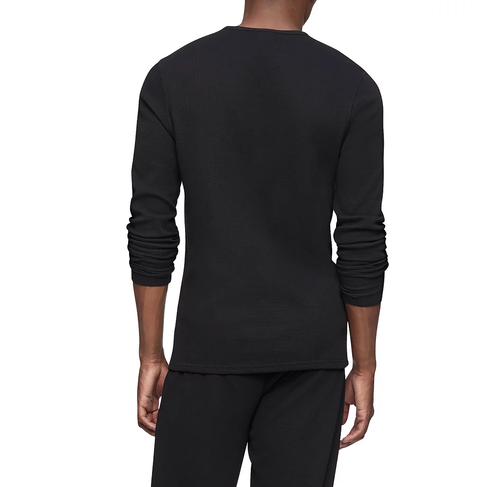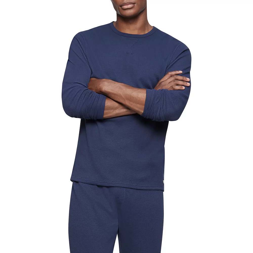 Designed with an intricate waffle-knit texture to maximize warmth and breathability, this men’s Calvin Klein crewneck top delivers easy-to-wear style.