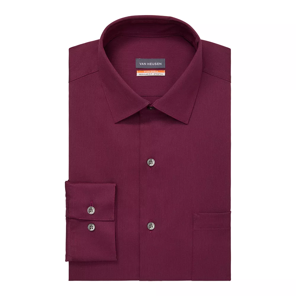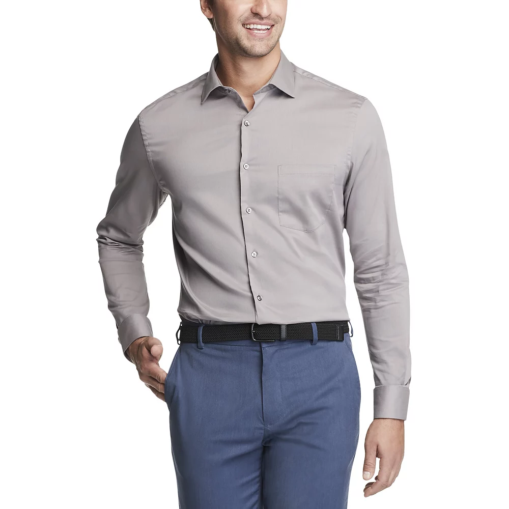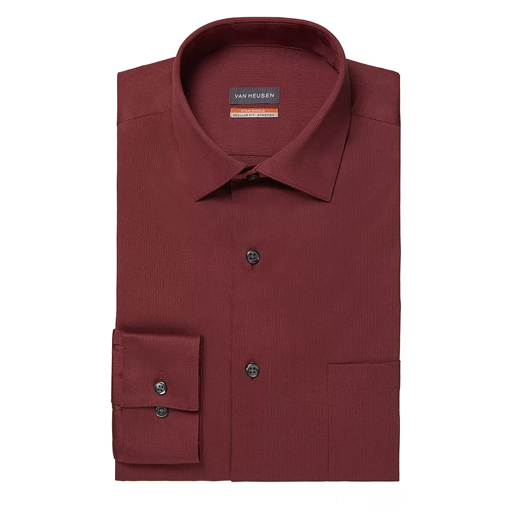 Dress for success. Achieve a sophisticated look at the office or any special event thanks to this stylish men’s dress shirt from Van Heusen.