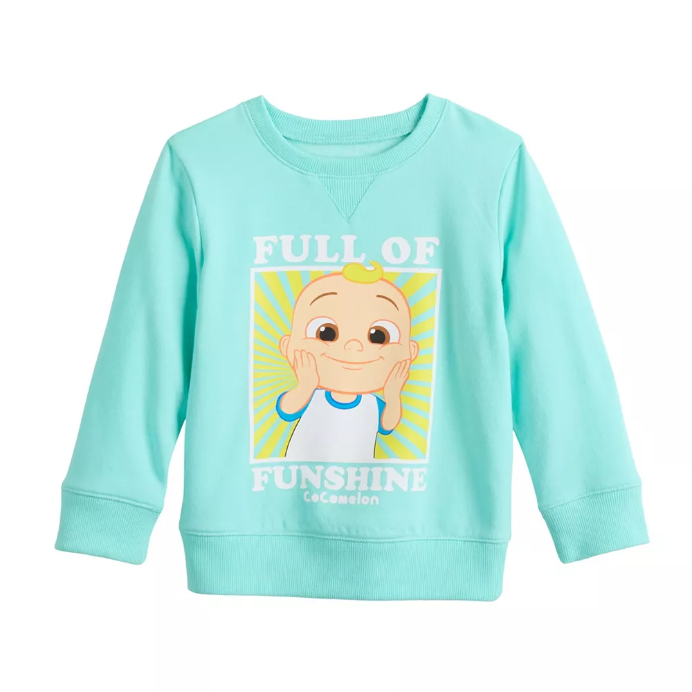 Your little guy will look cute and be cozy in this toddler boys’ Cocomelon fleece graphic sweatshirt from Jumping Beans.