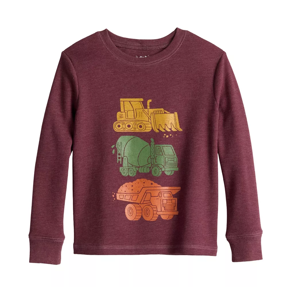 Your little guy will be ready to take on cooler temperatures in style with this toddler boys’ thermal graphic tee from Jumping Beans.