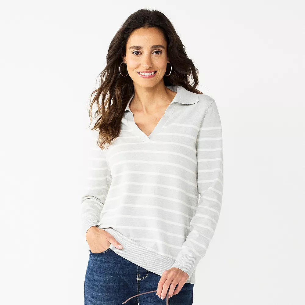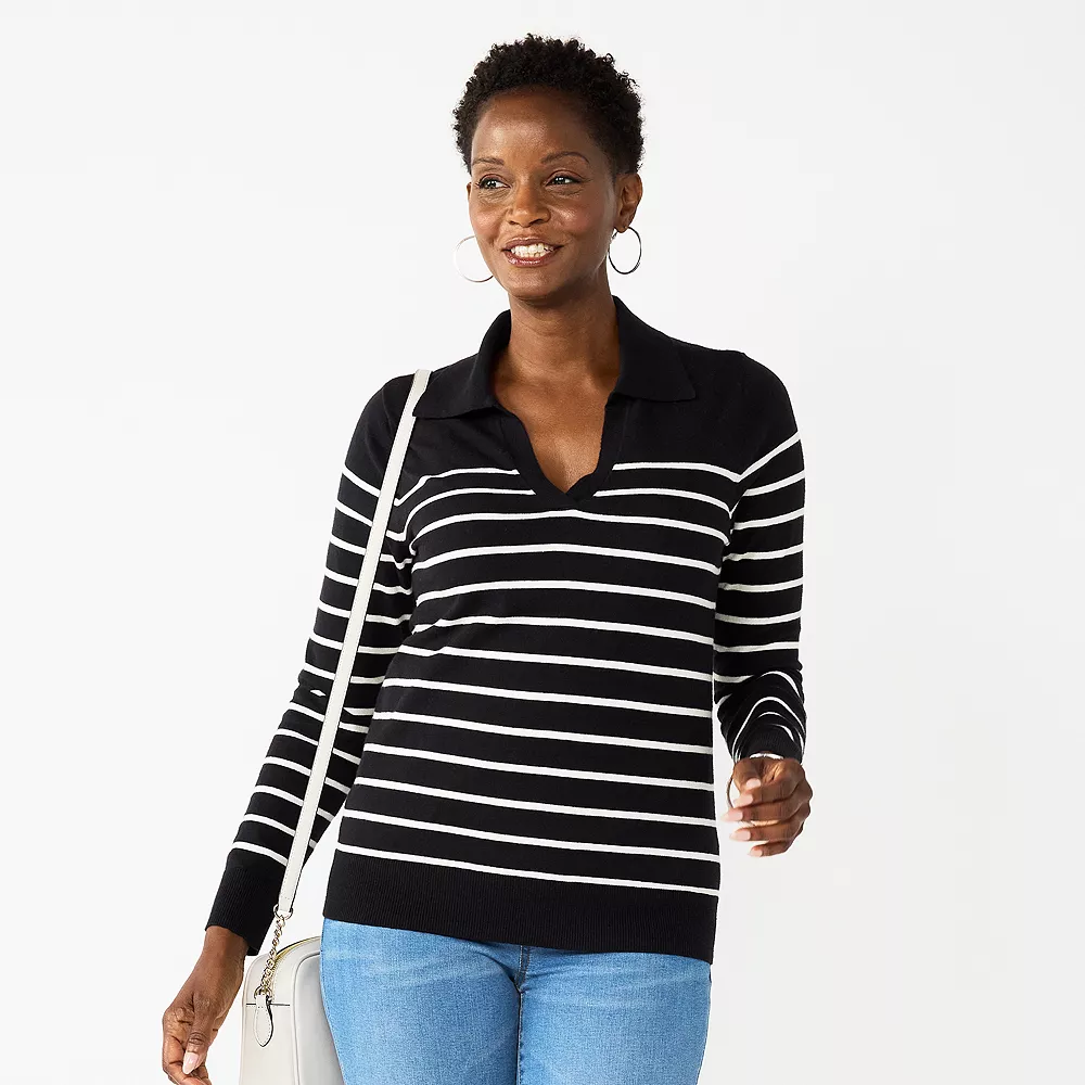 Update your cool weather wardrobe with this women’s polo collar sweater from Croft & Barrow.